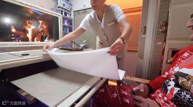 首先,漂亮的小姐姐亲自把他带到头等舱包厢