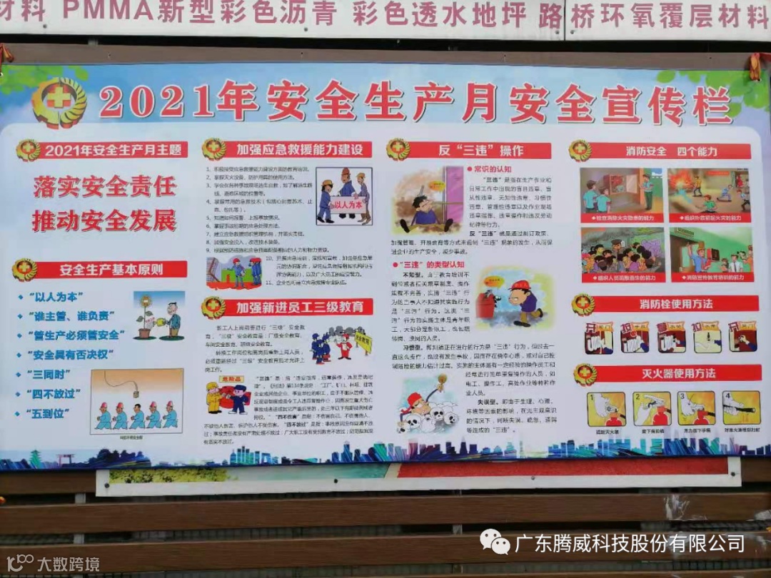 根据当地政府关于开展2021年安全生产月活动的指示要求,抓好当前安全生产和消防安全工作,结合我公司的实际情况,腾威生产基地举行2021安全生产和消防安全应急演练,突出排查安全风险、消除事故隐患、预防事故发生,确保我司安全生产形势持续稳定。活动取得了预期效果。