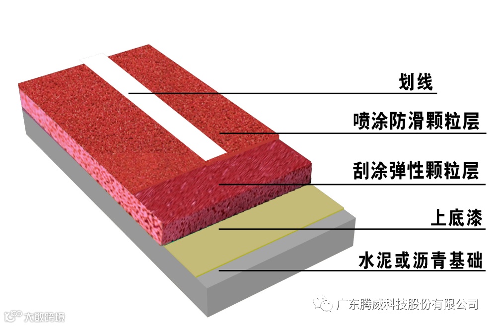 2. 不掉颗粒:腾威公司单组分跑道胶水粘接力强,颗粒不易掉;