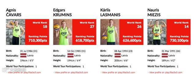 这支来自拉脱维亚的里加队首次在大师赛中亮相中国,球队世界排名第五。他们是在拿下2017台北3X3挑战赛冠军后获得通往大师赛成都站的门票。值得一提的是,凭借着同样的阵容他们在2017阿姆斯特丹3x3欧洲杯中代表拉脱维亚国家队拿下冠军,并在半决赛中淘汰了塞尔维亚诺维萨德队。