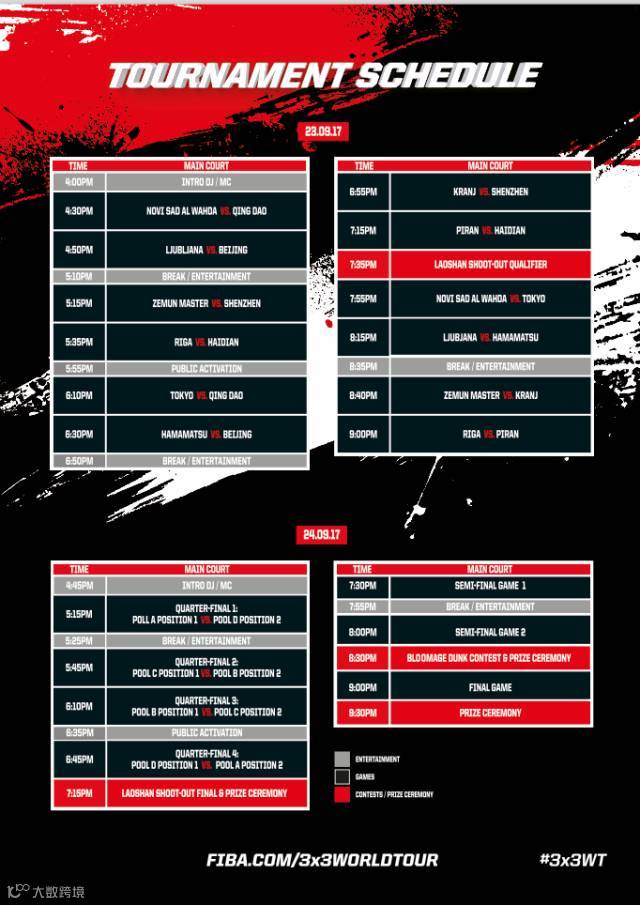 2017国际篮联三对三大师赛吸引了来自世界各国的12支顶尖球队,其中包括8支国外球队以及4支来自中国的球队。他们将分成四个小组率先进行小组赛,每个小组的前两名将进入到第二天的淘汰赛,直至最终冠军的产生。冠军将直接进入10月28-29日在华熙LIVE·五棵松举行的2017国际篮联三对三大师赛全球总决赛。
