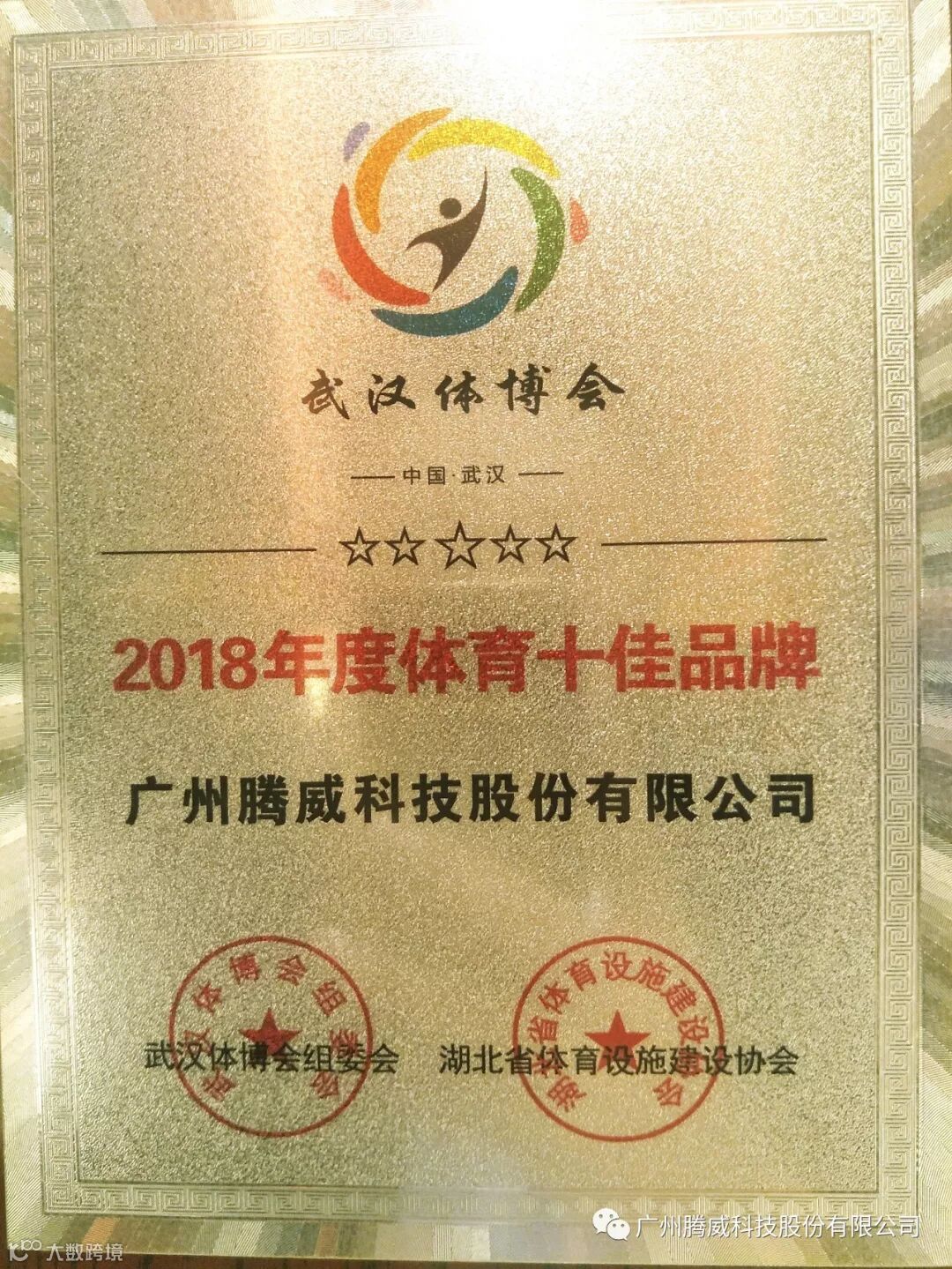 我司荣幸被评为“2018十佳体育品牌奖”奖项