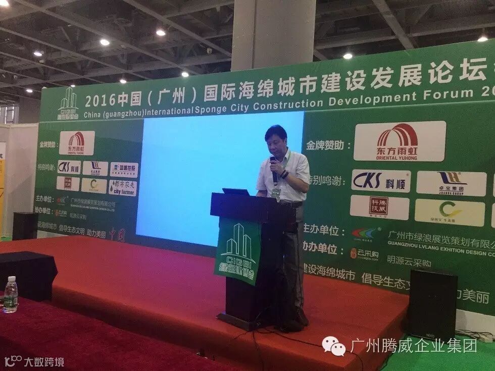 近年广州腾威企业集团积极拓展,为了深入贯彻落实(国办发〔2015〕75号)积极贯彻新型城镇化和水安全战略有关要求,有序推进海绵城市建设试点,专门成立了路桥材料事业部,为帮助各地客户推动有效防治城市内涝、保障城市生态安全等方面取得了积极成效。2016年广州腾威企业集团路桥事业部全泉总经理光荣当选全国工商联合会城市基础建设设施商会常务理事!我公司为加快推进海绵城市建设,修复城市水生态、涵养水资源,增强城市防涝能力,扩大公共产品有效投资,提高新型城镇化质量,促进人与自然和谐发展继续发力。 “2016中国(广州)国际海绵城市规划与建设展览会”作为“2016中国(广州)国际绿色建筑产业博览会”期间重点推出的专题展,以生态为本,自然循环的原则,展示我国海绵城市建设的“渗、滞、蓄、净、用、排”等将领域的新产品、新技术、新设备,借助第二届中国(广州)国际绿色建筑产业博览会所搭建的平台优势,共享数万名优质采购商资源,同时,展会期间还邀请了行业知名专家、学者和企业代表就行业前沿话题举办主题论坛会和研讨会,为参展企业搭建切实的发展平台,创造更多的市场拓展机会。