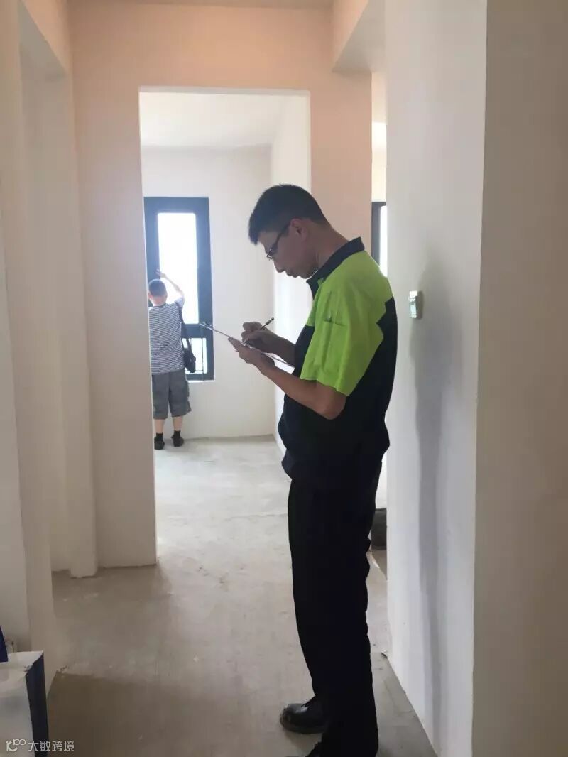 陪验师陪同客户验房,记录验房情况,业主笑逐颜开
