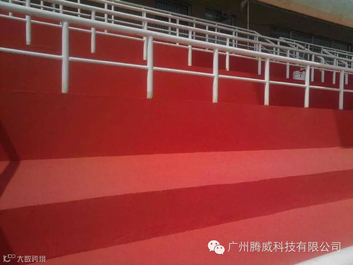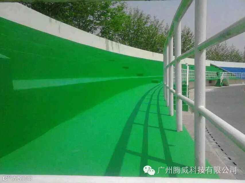 广州腾威科技推出的看台专用丙烯酸涂料是一种水性涂料,无VOC排放,环保无气味,色彩耐候耐磨、对混凝土附着优异、容易施工,快速固化!十分适合体育看台、壁球馆墙壁、自行车车道等涂装。