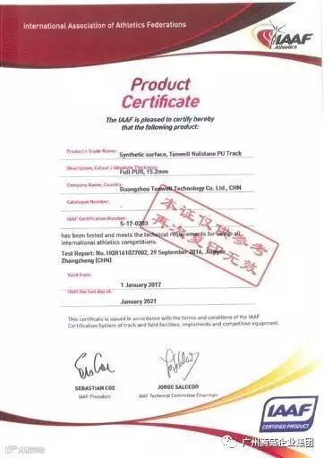 国际田联跑道IAAF认证的目的是为了使制造商的产品符合国际田联的规定,以保障运动员的健康和安全以及赛事的完整性和观赏性。
