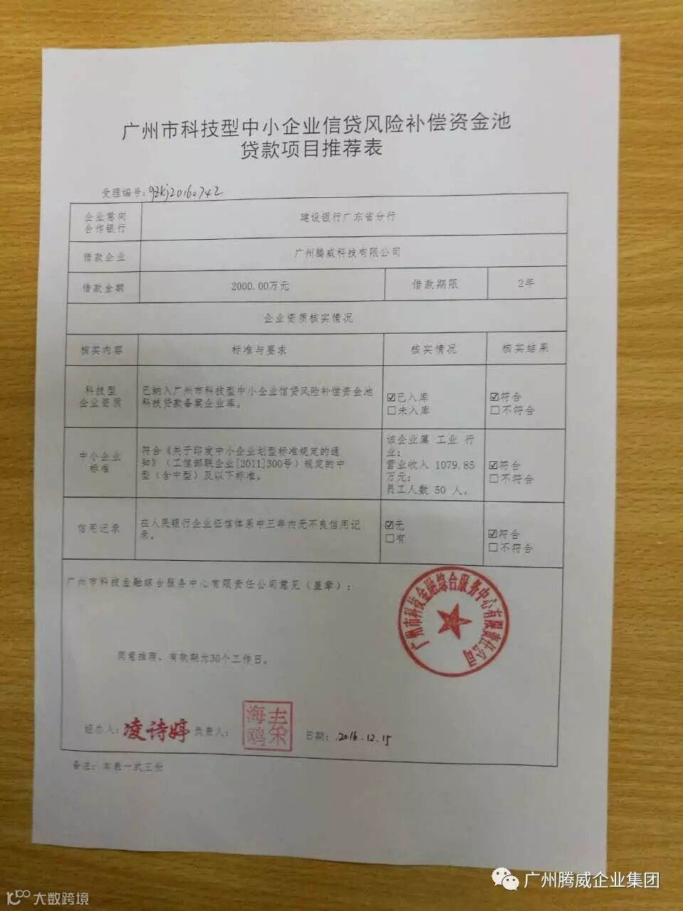 我司获得广州市科技金融中心联合建行无抵押信用贷款2000万额度审批: