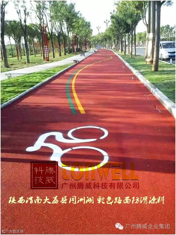 涂装了广州腾威科技有限公司固瑞达牌彩色防滑路面的自行车赛道在陕西大荔县首次迎来国际自行车比赛,新浪体育全程直播赛事: