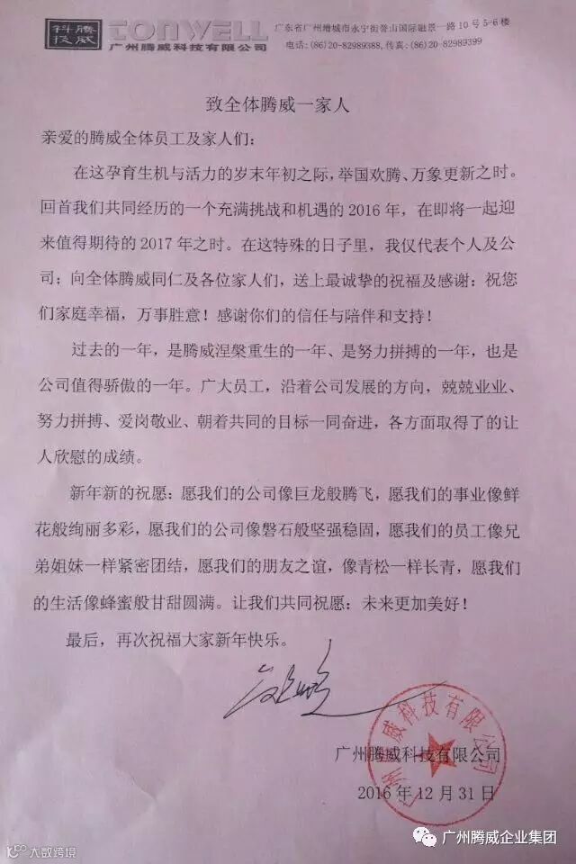 广州腾威在此祝福各位尊敬的客户、同仁和各界友人及您们尊贵的家人新年好!五福临门!心想事成!