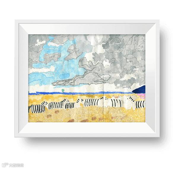 草料和白云,喂饱了漫步的斑马。作画人定格了大自然的这一瞬间,也将自己单纯的灵魂藏在其中。