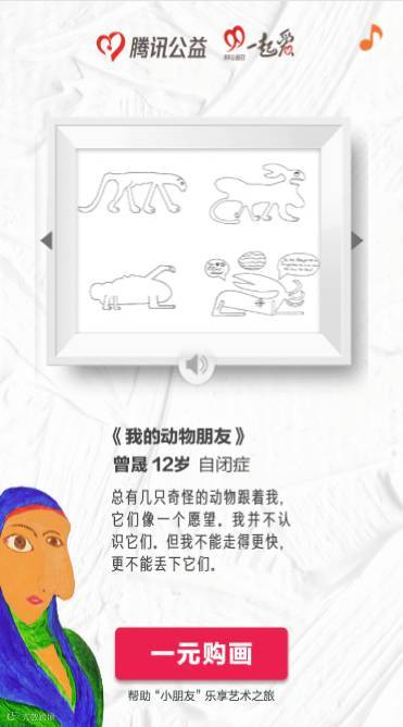 而腾讯公益开展了这次“用艺术点亮生命”的公益活动,正是为了呼吁我们翼起来帮助这些未来的艺术家们,不需要你捐太多钱,一元就可以。