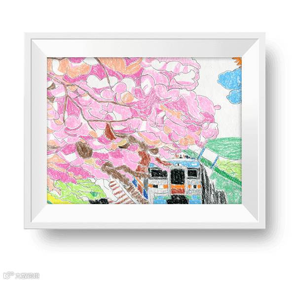 “一辆列车遇见了春日的花海,正如在茫茫中,你遇见了这幅风景”