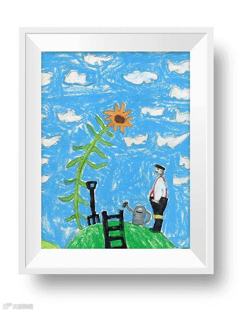 “攀越扶梯,抵达家园,蓝天白云下,园丁似乎在和向日葵诉说心事,也许这是属于阿页的小小星球吧”