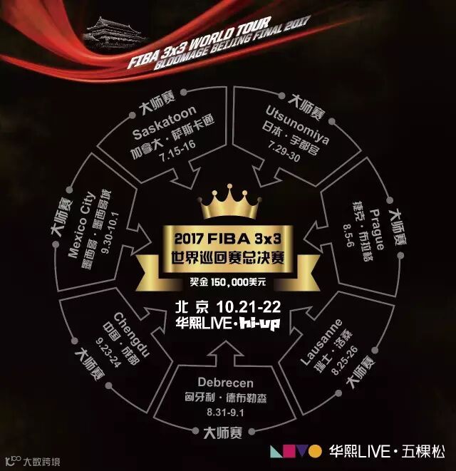 怎么样,这个奖金够有吸引力,筛选晋级机制,够严苛吧。10月前往五棵松打三对三的选手,也绝对是高手中的高手。全球总决赛啊,可不是随便什么人想参加就能参加的,只有2017年七站三对三大师赛冠军和当年五支世界排名最高球队,才有资格参赛。2017年10月21日、22日,2017国际篮联三对三世界巡回赛全球总决赛将在五棵松hi-up上演,这是世界顶级三对三赛事的总决赛首次来到中国。