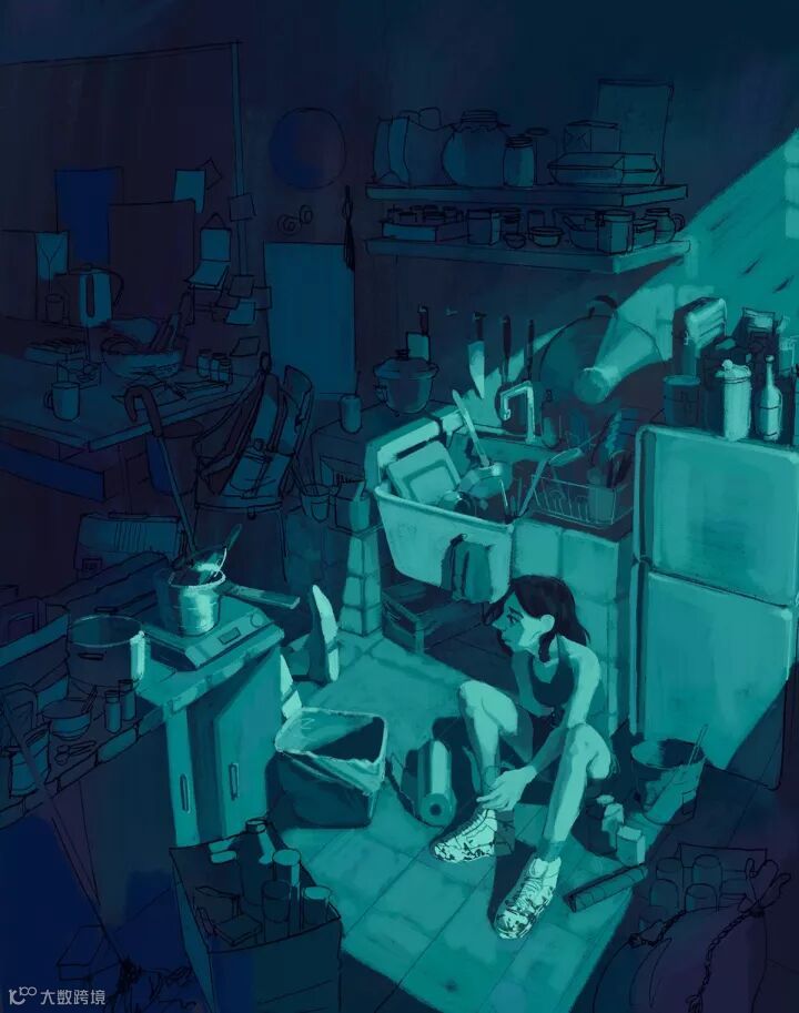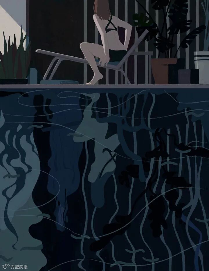 Katherine的画构图清爽,擅用光影,色调灰而冷,有点酷,又有点苦,看了很多遍,想起很多王家卫的电影。如果要给这些插画找一个主题的话,那就是孤独。