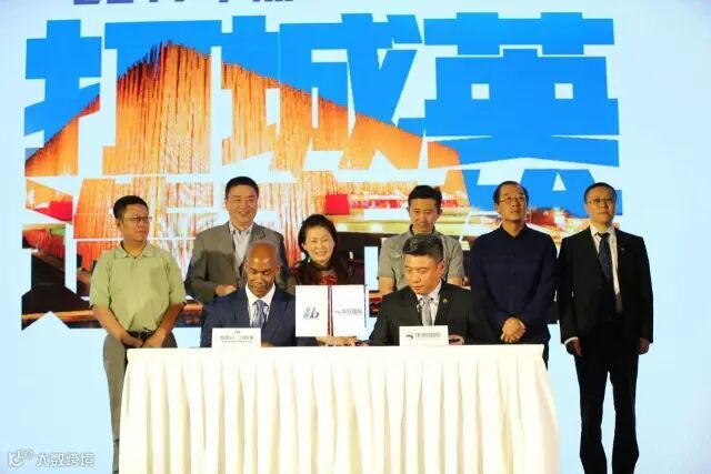 华熙国际文化体育发展有限公司总经理靳飞先生与斯蒂芬·马布里先生正式签约
