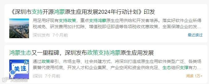 政策支持:深圳市工业和信息化局、深圳市政务服务和数据管理局联合印发了《深圳市支持开源鸿蒙原生应用发展2024年行动计划》。提出了具体的目标,如实现深圳市鸿蒙原生应用数量占全国总量10%以上,深圳市主要垂域实现鸿蒙原生应用全覆盖等。同时,还制定了加强鸿蒙原生应用供给能力、推动鸿蒙原生应用产业集聚、完善鸿蒙原生应用产业生态等具体工作任务。