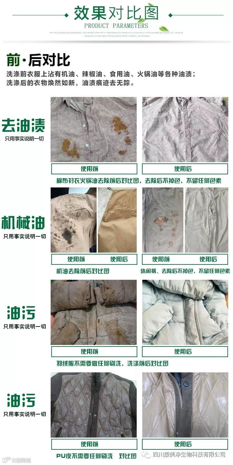 1、15公斤水洗机加低水位,此时才能开始加袁黑哥油污免刷剂B100克;(油污免刷剂B最好提前用小于50度的热水把粉溶解彻底,溶解袁黑哥油污免刷剂B的时间要小于10分钟),热水溶解时间长会影响去污活性,直接把溶解后的袁黑哥油污免刷剂B投入机器,接着加入200克袁黑哥油污免刷剂A的,浅色衣物可以适量加入100克高分子依泡粉,然后将10件短棉服、防寒服、羽绒服不作任何前处理,直接投入机器洗涤,水温为38-42度,洗涤25-30分钟衣物湿透情况下保持水位在13-15厘米加50-100克高浓消泡剂,衣物内胆磨痕较脏的可以翻过来洗涤;