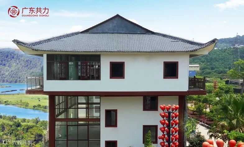 共力树脂瓦同样有着出色的场景适配性。在乡村自建房中,“砖红” 树脂瓦搭配白墙木窗,营造出质朴又不失典雅的氛围;中式庭院别墅选用 “蓝灰” 树脂瓦,与亭台、假山、流水相得益彰,尽显诗意;文旅民宿项目采用 “金黄” 树脂瓦,搭配故宫文创元素软装,让游客沉浸式感受东方文化魅力。