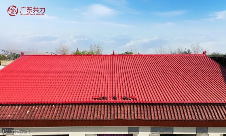 共力树脂瓦在品质把控上同样严苛,选用世界500强企业的高品质原材料,经多道精密工序打造而成。成品树脂瓦质感细腻、色泽饱满,具备超强耐候性。无论是高温暴晒、暴雨冲刷,还是低温霜冻、强风侵袭,都能保持稳定性能,不易褪色、变形、开裂,使用寿命可达 30 年以上,如同故宫文创一般,以卓越品质赢得信赖。