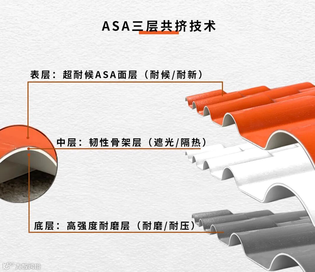 共力凭借品质与服务在行业内遥遥领先,在众多的好评反馈下,ASA树脂瓦一跃成为行业内热门爆款。ASA三层共挤技术——替代传统瓦片的易碎、掉色、寿命短等缺点,打造出10年不掉色,寿命长达30年的特点。