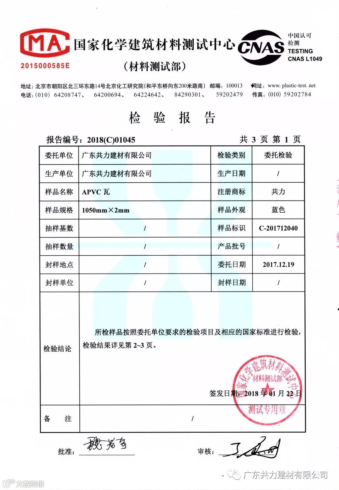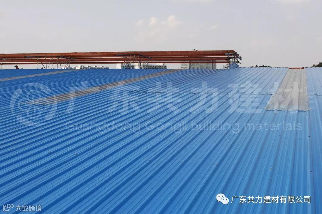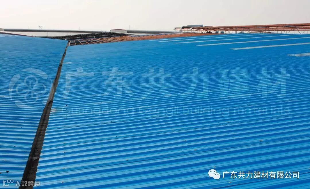 隔音性能:经试验证明:在遭受暴雨、大风等外界噪音影响时,共力A-PVC防腐复合瓦具有很好的吸收噪音功效,比彩钢瓦的噪音下降30dB以上。