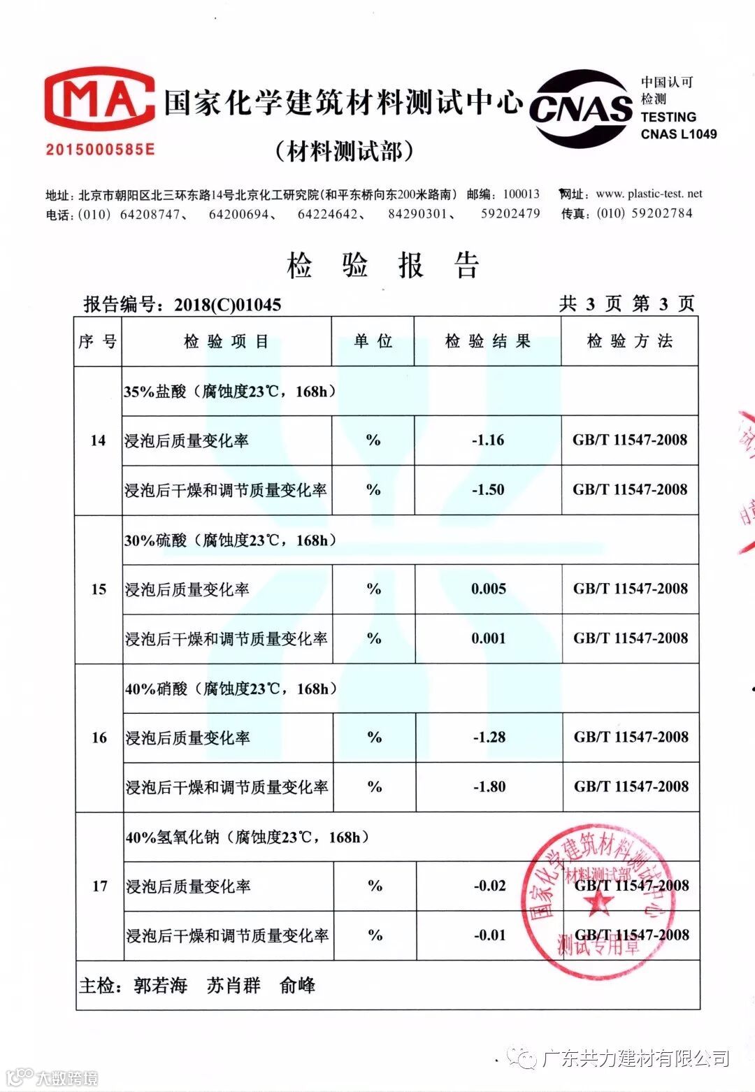 耐腐蚀性能:在盐、碱及60%以下各种酸中浸泡24小时无化学反应、不褪色。非常适合于酸雨多发地区、腐蚀性厂房和沿海地区使用,效果特别显著!(注:质量差的产品在酸中浸泡后褪色严重!)