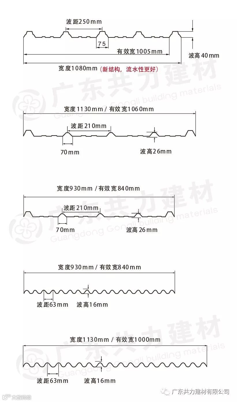4. 3.0mm≥厚度≥1.8mm波浪瓦,建议斜屋面檩条跨≤900mm,而拱形屋面檩条跨距≤1000mm;