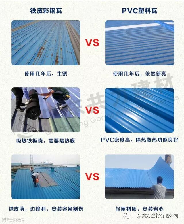 共力PVC瓦就是针对传统彩钢瓦易生锈腐蚀、防水性能差、隔热防腐性能不良而研发出来的,主要应用于各类厂房、仓库、农贸市场、市场通道、车棚等建筑领域。