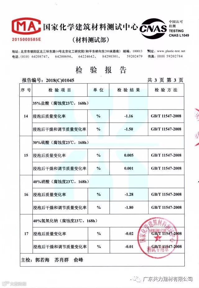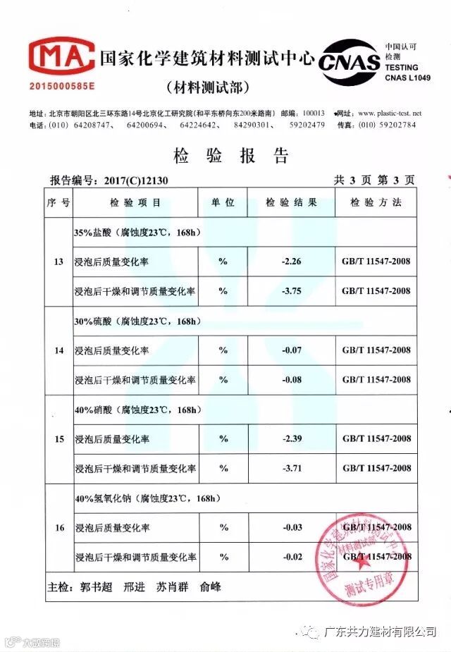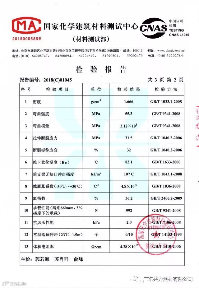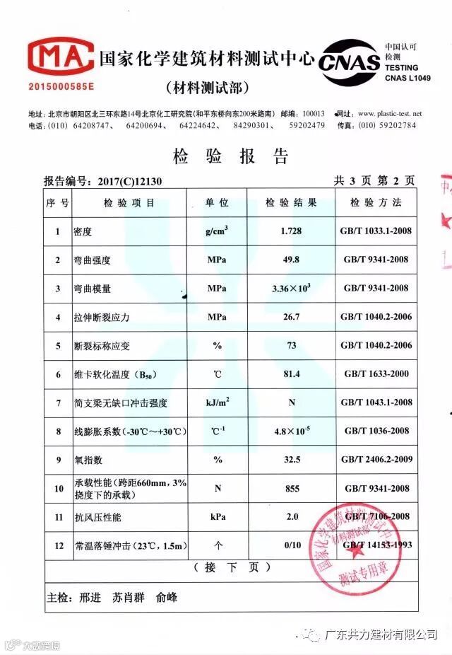A-PVC塑钢瓦国家检测报告