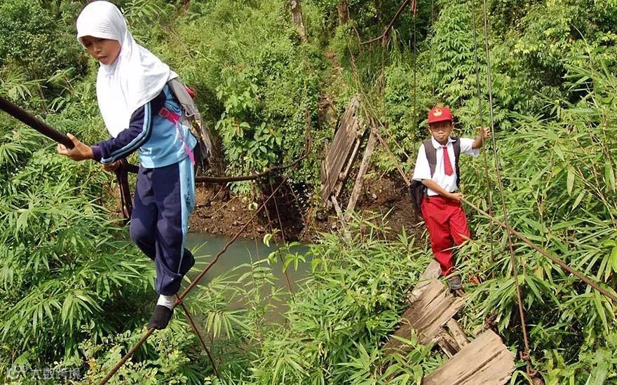 你可能觉得觉得过马路或者赶校车已经是最大的风险,而世界上的有些孩子,每一天,都要走上难以想像的上学之路,那些断桥、树根、飞索、漂流……
