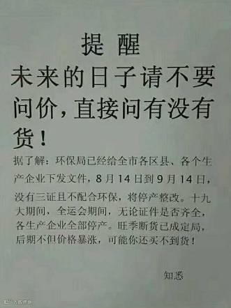 老总:不好意思,货没了。准备提前放假了!现在环保形势紧张,产品价格报不准,交货日期待确定!
