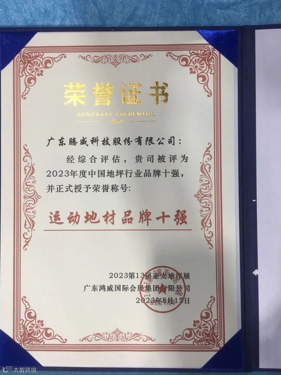 2023年度运动地材品牌十强荣誉称号!