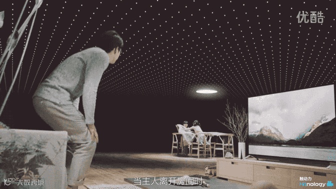 ◤当主人进屋时,通过灯内置的传感器,自动控制电视打开。。。◢