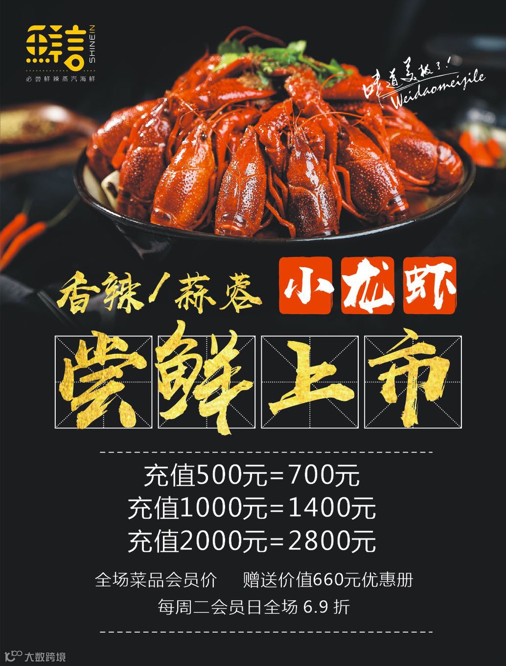 1、尝鲜蒜蓉/香辣/蒸汽小龙虾:68元/斤