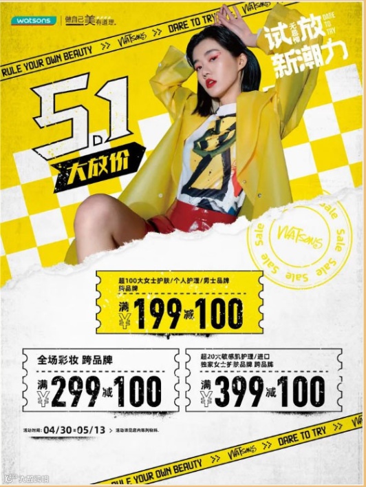 1、超100大女士护肤/个人护理/男士品牌跨品牌满199减100元;