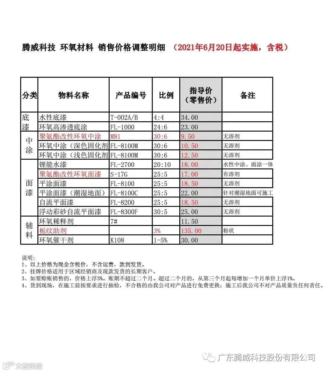 腾威公司决定对环氧地坪铺装材料做出战略性价格调整并对外正式公布。