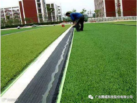 腾威公司专门研制开发出一种不含溶剂,符合环保标准的人造草铺装专用胶粘剂R-9,不仅粘结力强,产品柔韧性好,而且快干易刮涂,耐热、耐酸碱等特性,适用于足球场、幼儿园、户外装饰、小区、高尔夫球场等场所草坪的铺装,尤其适用于粘结人造草坪之间的接缝带。
