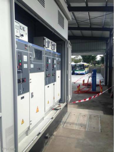 作为一家致力于推动新能源事业发展的本地知名企业,众业达为深展巴士提供了一套额定容量为1600kVA的预装式充电站。它配备四个直流快充桩,输出电压500-750Vdc,总电流2000A,充电速度为6kWh/min,支持4桩500A或8桩250A充电,支持钛酸锂、磷酸铁锂等动力电池,满足锂电池或超级电容动力的电动大巴、物流车的快充需求。快充模式非常贴合公交公司的运营习惯,每辆车每次充电仅需10-15分钟,很好地匹配了原有的发车间隔、场地周转率等公交运营要求。