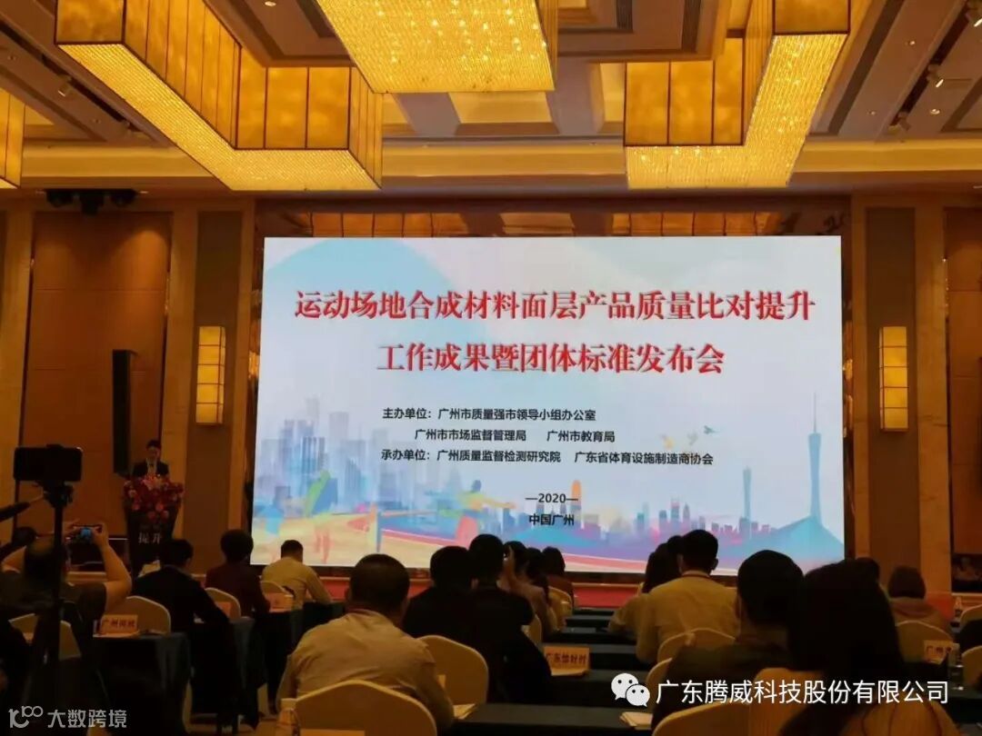 2020年11月24日,广州市质量强市工作领导小组办公室牵头举行的运动场地合成材料面层产品质量提升工作成果暨团体标准发布会在番禺美丽豪酒店召开。广东省体育设施制造商协会与广州质量监督检测研究院共同承办本次大会。