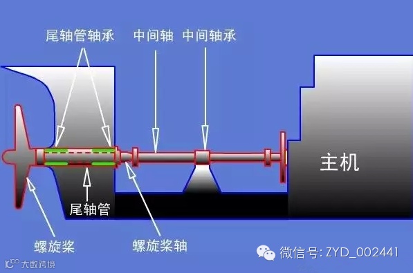 船舶推进器中以螺旋桨应用最为广泛,大多采用固定螺距或可调螺距的螺旋桨推进器;船舶轴系是将主机发出的功率传递给螺旋桨的装置。船舶主机通过传动装置和轴系带动螺旋桨旋转产生推力,克服船体阻力使船舶前进或后退。