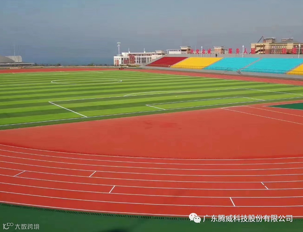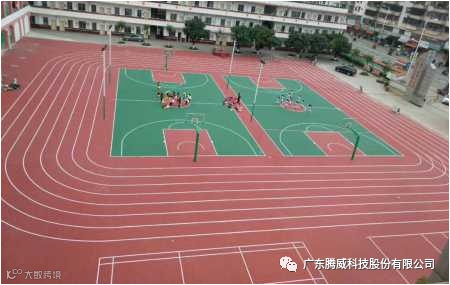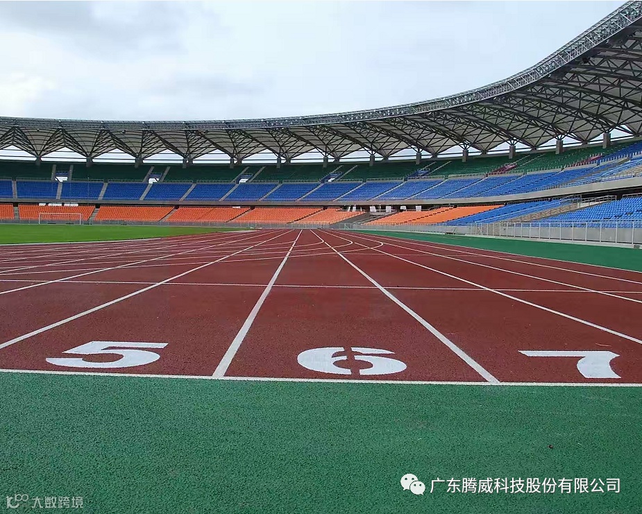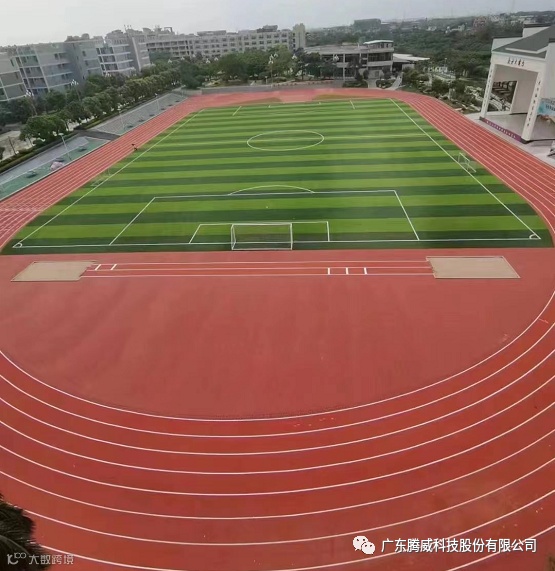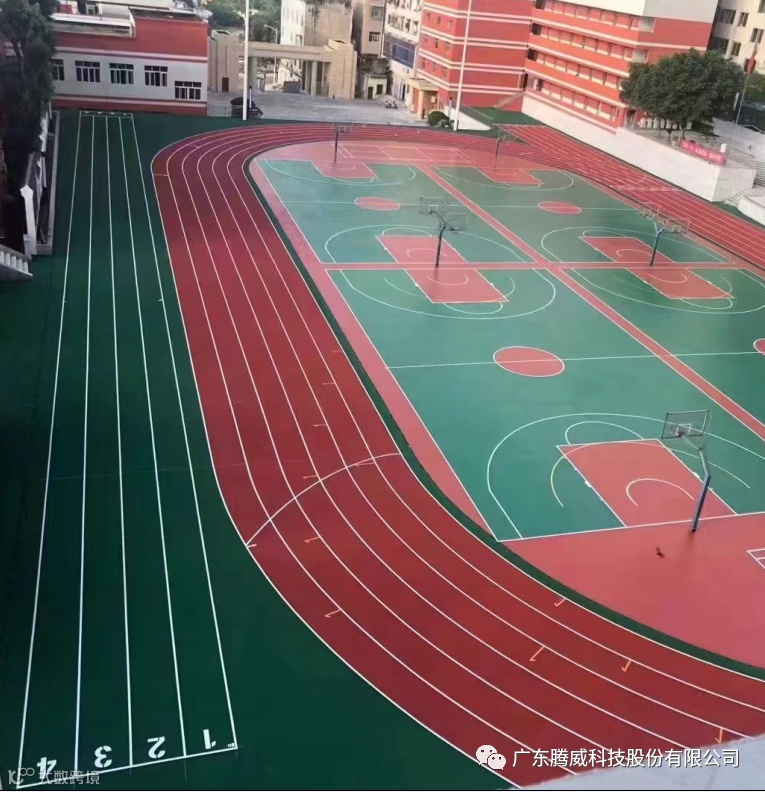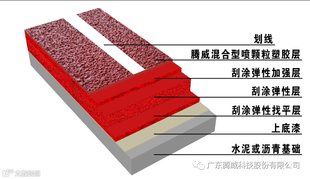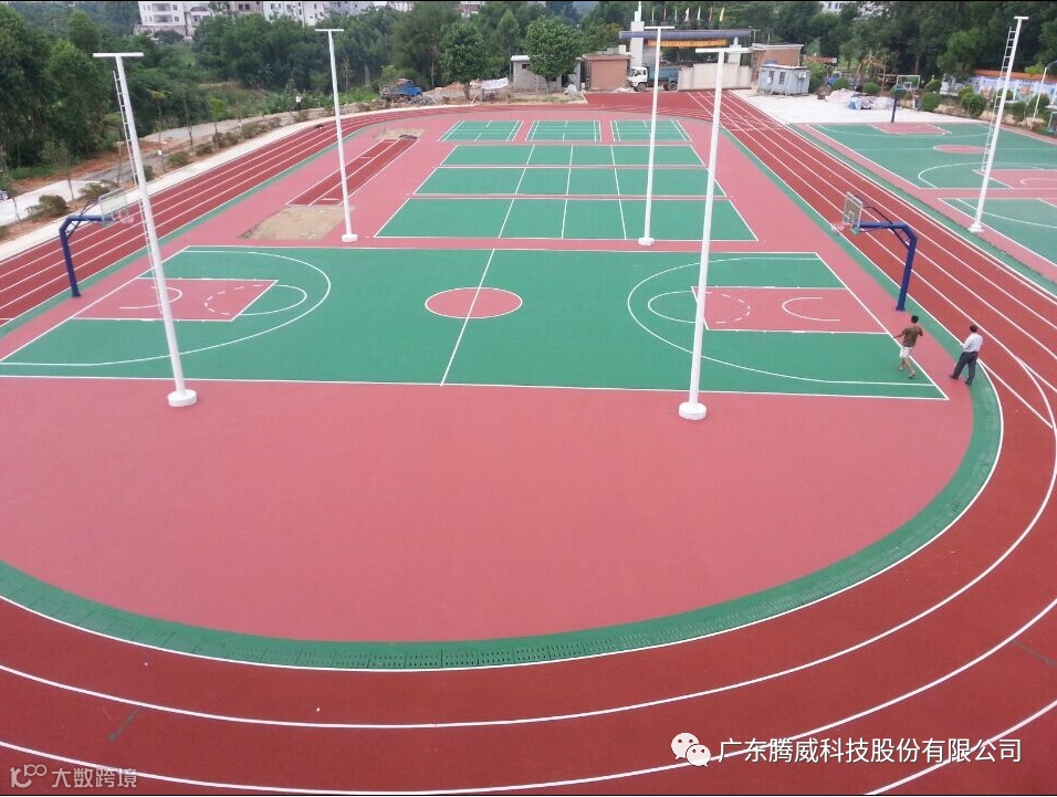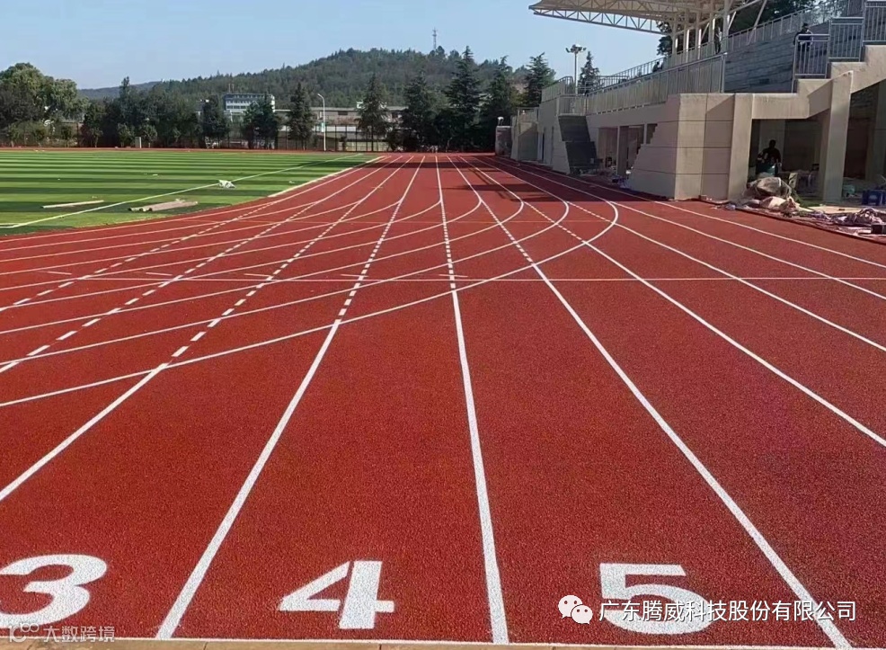 腾威混合型聚氨酯跑道采用无溶剂高渗透底漆、创新跑道弹性层、环保EPDM彩色颗粒和S-9跑道面层组成跑道面层,相对全塑型跑道性价比较高,既具备了全塑型跑道的耐候、耐用、防滑、强度和弹性优势,同时又拥有较低的成本和施工便利性。