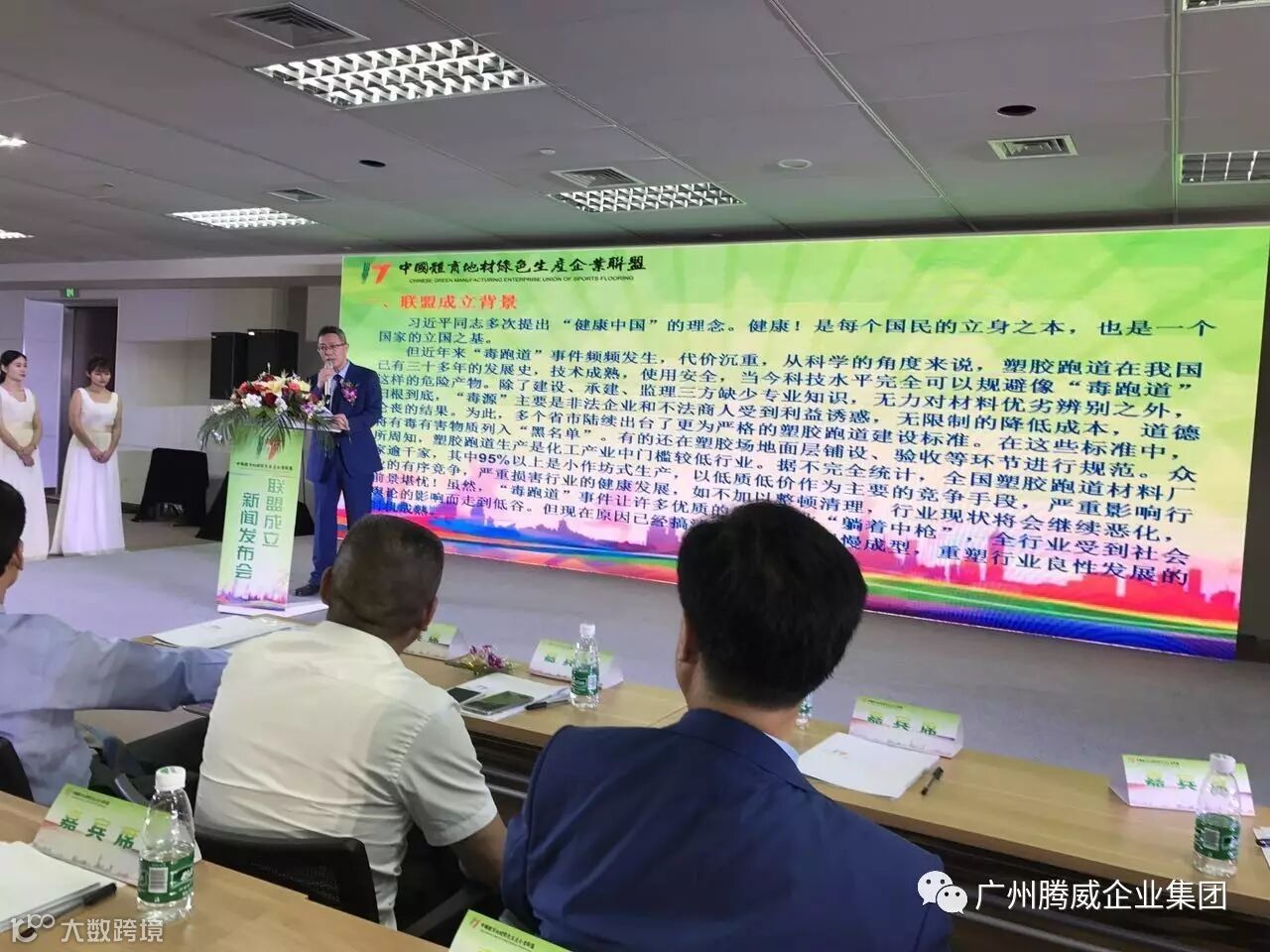 联盟发起人单位之一,广州腾威科技有限公司董事长全洪晖先生、总经理全宏亮先生于上海出席了中国体育地材绿色生产企业联盟成立大会。
