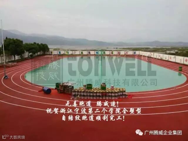 以广州腾威科技股份有限公司的材料举例,跑道弹性层M9、双组分硅PU弹性层M8、跑道面漆S-9、自结纹面漆S-10等都属于双组分聚氨酯材料。这些材料在施工时,必须严格考虑以上讨论的三个因素:配比、水汽、温度!!