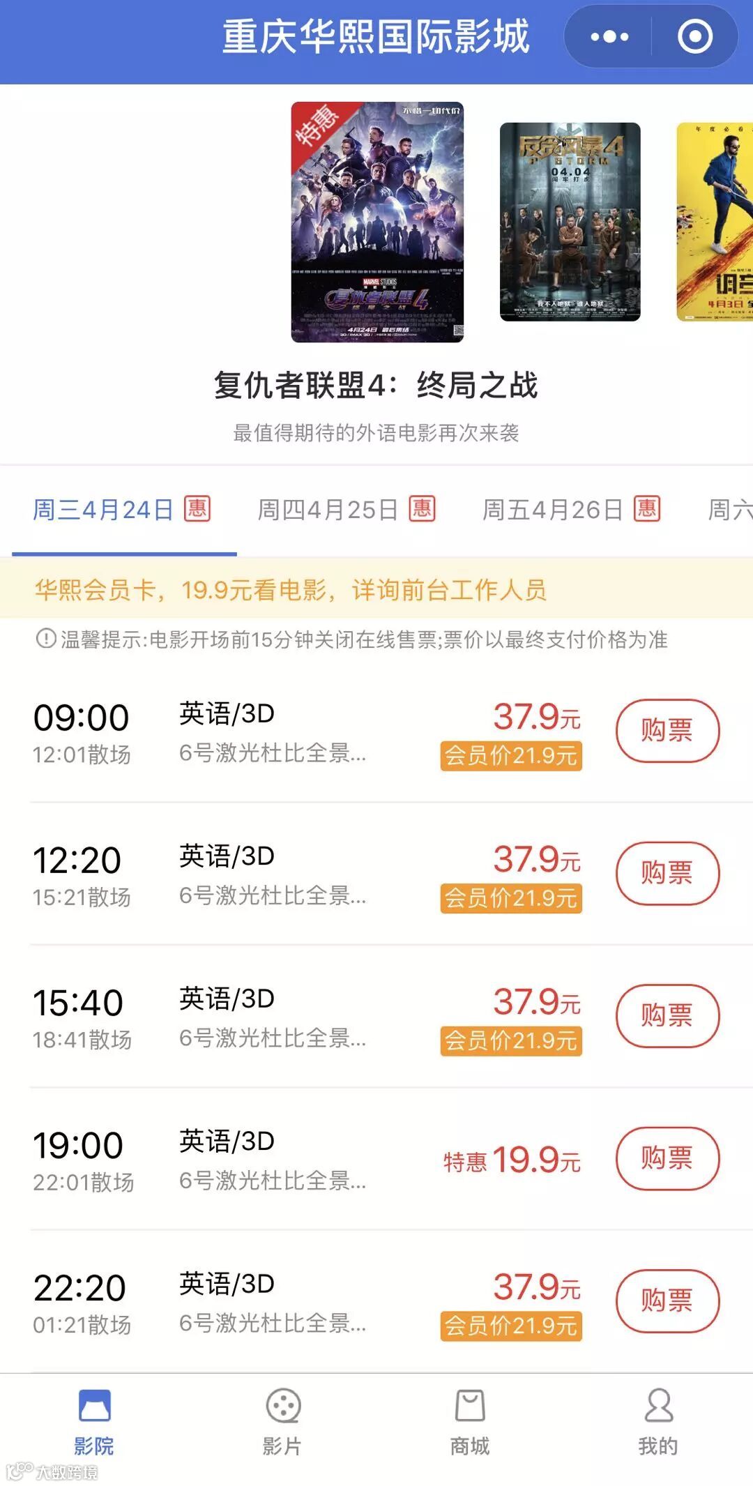 “花最少的钱,看最好的《复联4》”