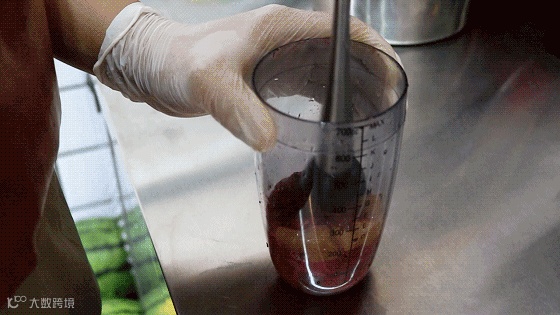 先是把水果捣碎,然后加入冰块,最后再注入手工打发的澳洲芝士奶盖。既要保证快速成品又要保证品质,每一个步骤都在考验制茶师的功底。