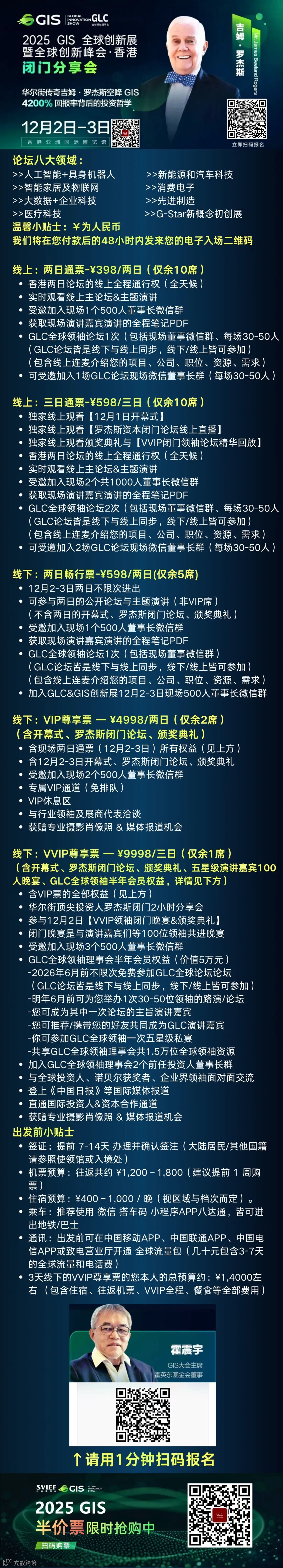 2025 GIS 全球创新展暨全球创新峰会·香港,旨在汇聚全球的创新力量,是全球创新生态的顶级盛会,专注为中国企业出海和全球科技企业进入中国市场搭建高效、务实提升全球影响力的对接平台,重点关注人工智能+具身机器人,汽车科技,智能制造,新能源和电子消费领域的合作对接!