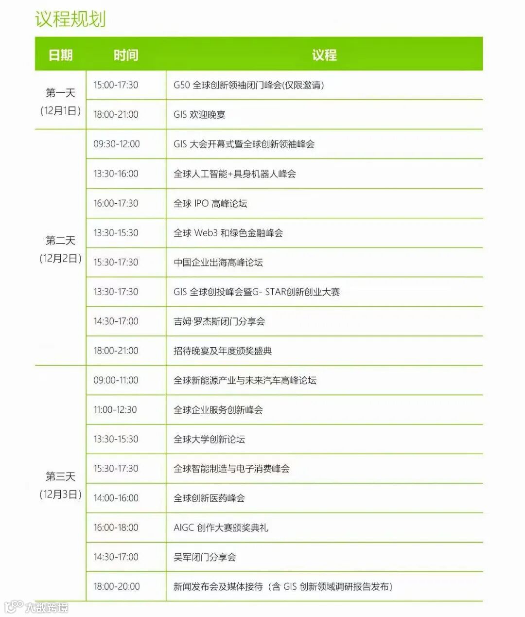可参加12月2-3日开幕式、罗杰斯闭门论坛、颁奖典礼