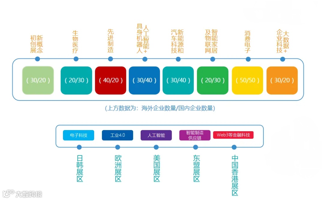 不仅如此,展会还设置了美国、欧洲、韩国、东盟及中国香港五大国家 / 地区主题馆组成的国际展区矩阵,让全球科创特色成果在此集中呈现。