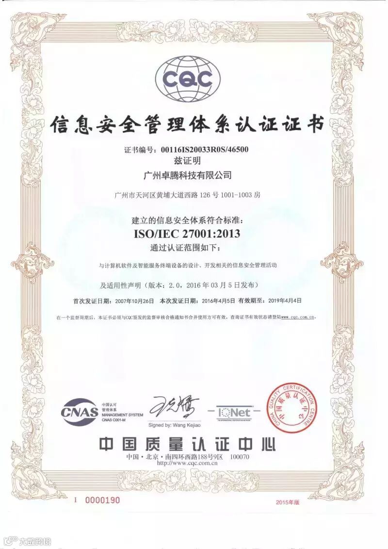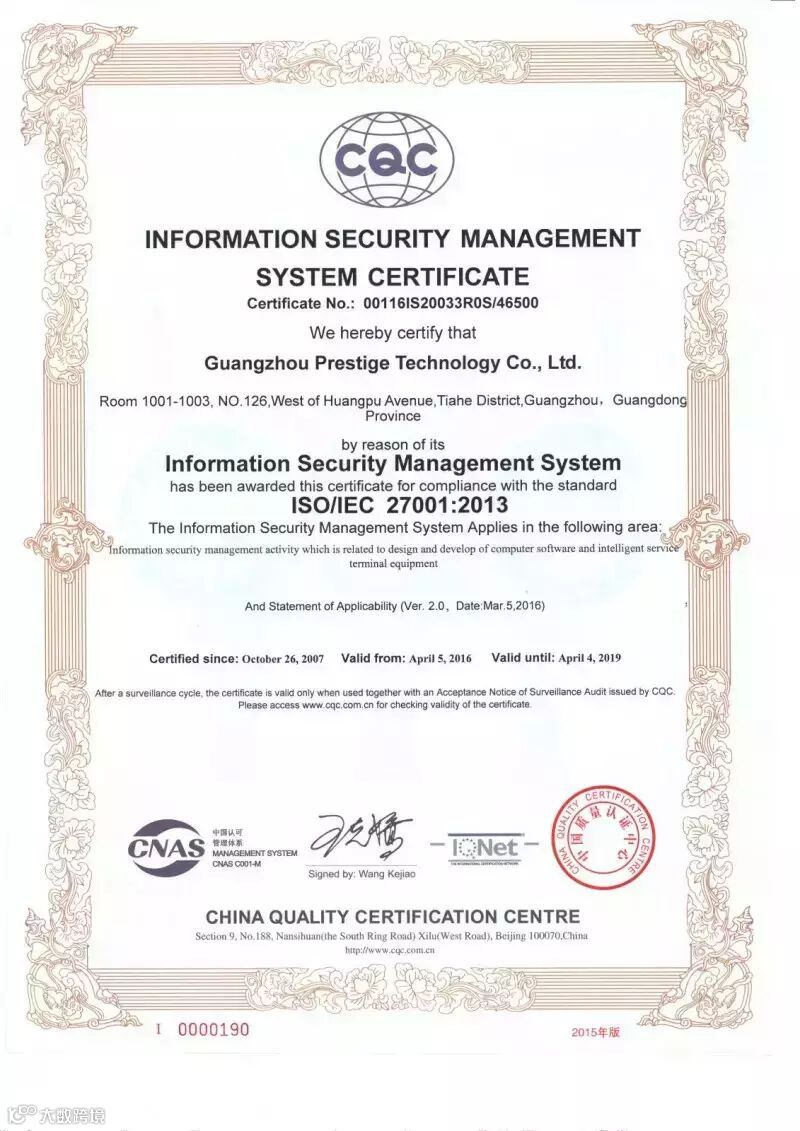 2016年4月5日,我司最终通过认证